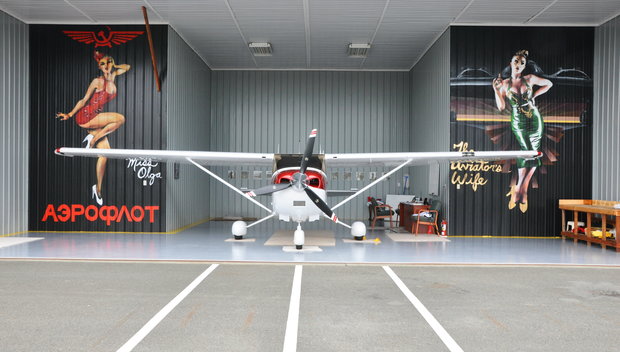 2025 Captain Steve's Cessna 182 hangar. photo: Lotus Johnson by Peter Allen
