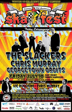 Victoria BC Ska Society is proud to present you The Slackers and Chris Murray on our special edition Friday ticketed show at Ship Point (Inner Harbour). Joining them will be Seattle stewards of ska - The Georgetown Orbits. For years the Georgetown Orbits have graced Victoria Ska Festival audiences with their presence while they stood in line waiting to get into various festival shows. They also would play off stage in between breaks and busk around town during the festival spreading the good news! The Slackers have been one of Victoria's favourite ska bands since the spring of 2000 when they first came to The Limit (*an old great live venue in Victoria) and Chris Murray has also been a huge part of the scene since 2000 and before. Both the Slackers and Chris Murray have played on the Victoria Ska Festival back in 2000, and 2003 respectively. Chris Murray played in 2000 at Market Square and then again in 2003 at the Victoria Curling Club. The Slackers played in 2003 at the Victoria Curling Club headlining the festival. This show is one of the most anticipated shows for Victoria's 10th Anniversary Ska Festival and the Slackers were the first to confirm! Let's make this one the first to sellout!