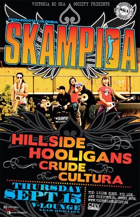 We bet you didn't expect this announcement but it's true... SKAMPIDA from Bogota, Colombia (one of BC's favourite Colombian party bands) is coming to Victoria at V-Lounge - Thursday, September 15, 2011 with special guests HILLSIDE HOOLIGANS & CRUDE CULTURA (members of Rocky Mountain Rebel Music & Divine Element).