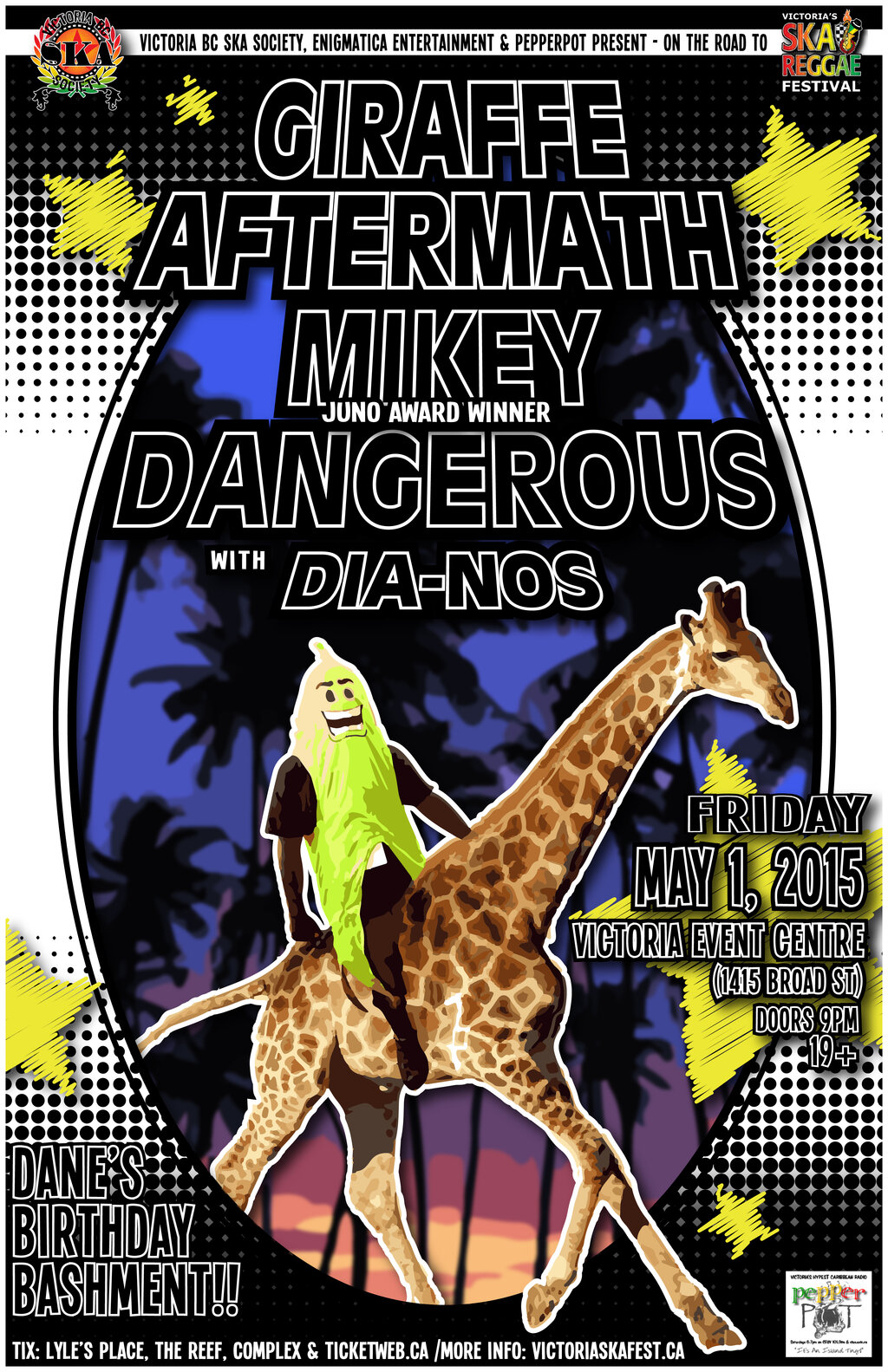 GIRAFFE AFTERMATH, MIKEY DANGEROUS & DIA-NOS triple bill on Friday, May 1, 2015 at Victoria Event Centre!