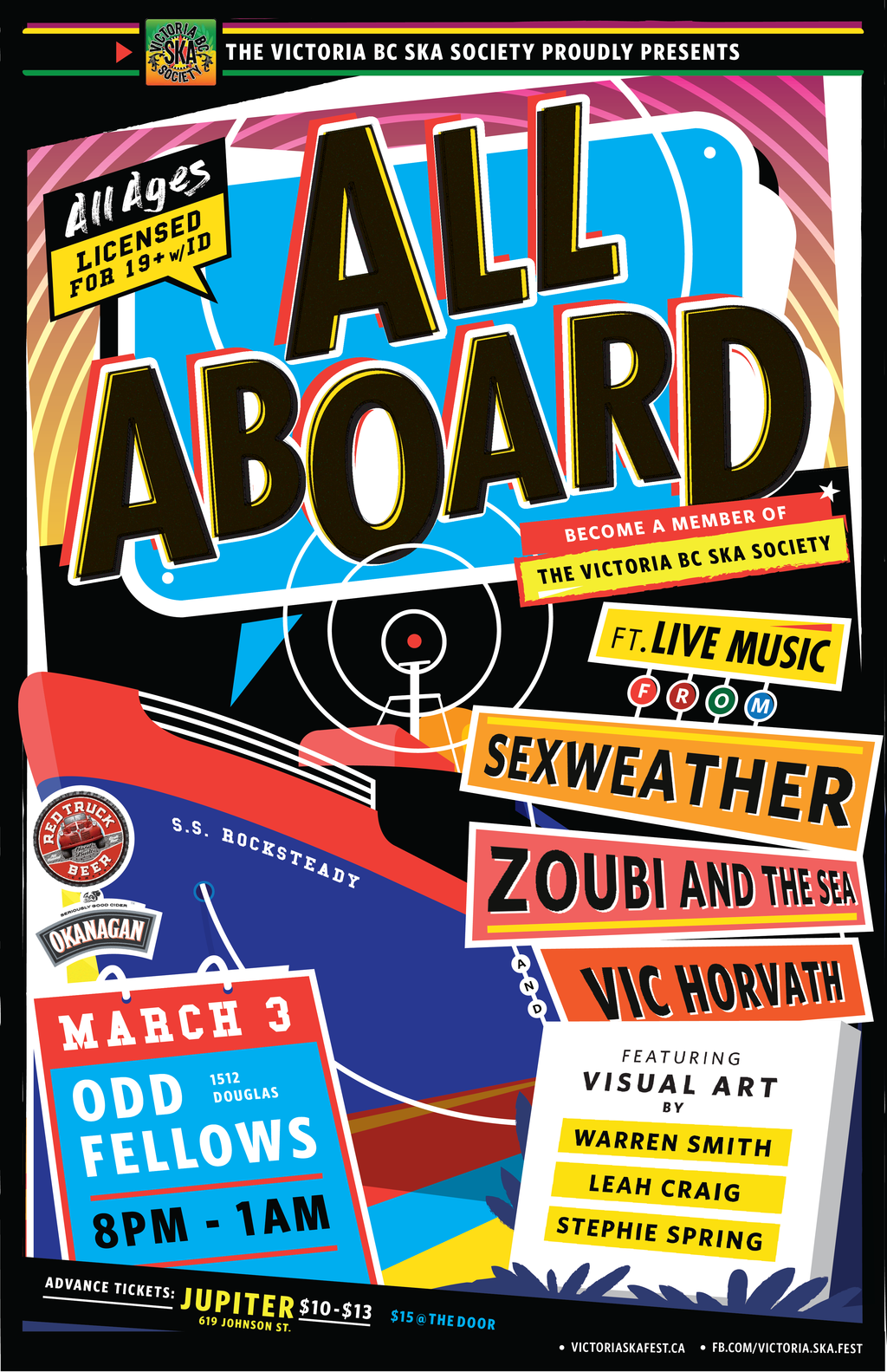 Victoria BC Ska Society is happy to present an exciting night of music and visual arts in celebration of our Membership Program Launch at Odd Fellows Hall on Friday, March 3, 2017.