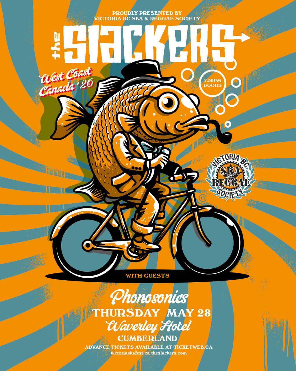Thursday, May 28th Victoria BC Ska & Reggae Society is excited to bring Brooklyn NY's ska/reggae kings THE SLACKERS to Cumberland BC for the first time at The Waverley Hotel. The last time The Slackers came to the Island in 2024 we celebrated the 25th Anniversary of the Victoria Ska & Reggae Festival.