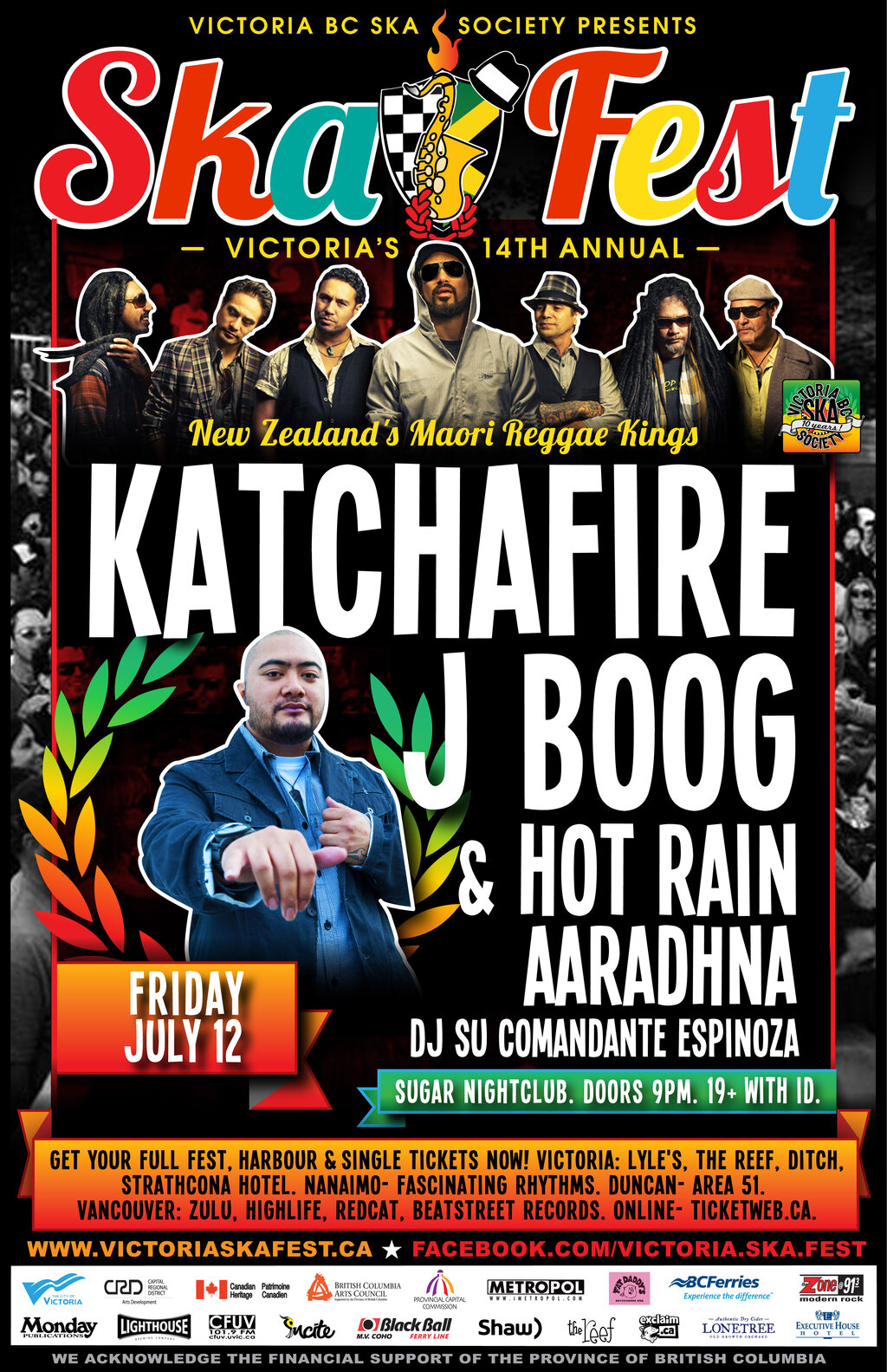 New Zealand's Maori Reggae Kings - Katchafire return to Victoria Ska Festival for a third time with Hawaiian/Compton Cali Reggae Superstars J Boog & Hot Rain - Friday, July 12th at Sugar Nightclub.