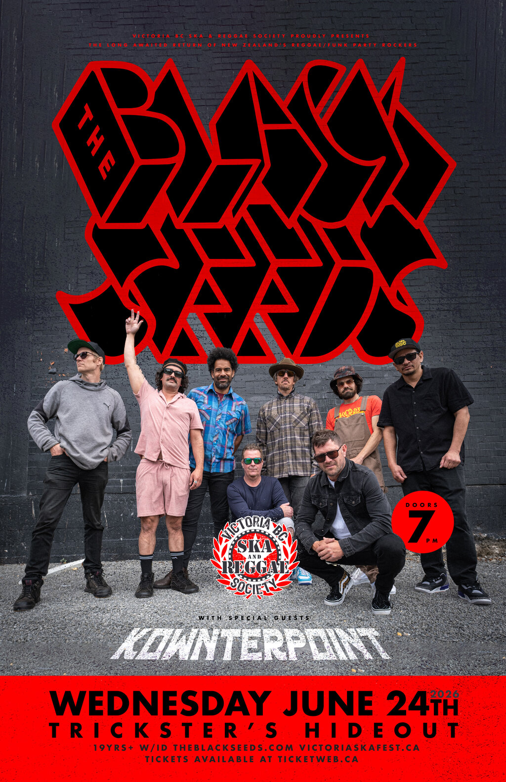 The Black Seeds will be joined by Vancouver's Kownterpoint who have deep roots in the ska/reggae scene in on the west coast. When you combine diversity, with positive energy, you have the starting formula for what Kownterpoint brings to the stage. Blending an eclectic mix of genres such as: Reggae, Ska, Punk, Blues, Jazz, Surf, Grunge and Hip Hop, this band truly creates their own unique sound and style.